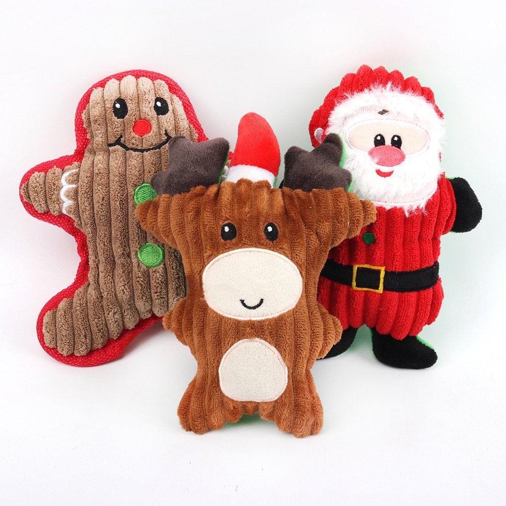 Christmas pet chew toy Pet plush voice toy Christmas molar bite-resistant cute cartoon dog toy