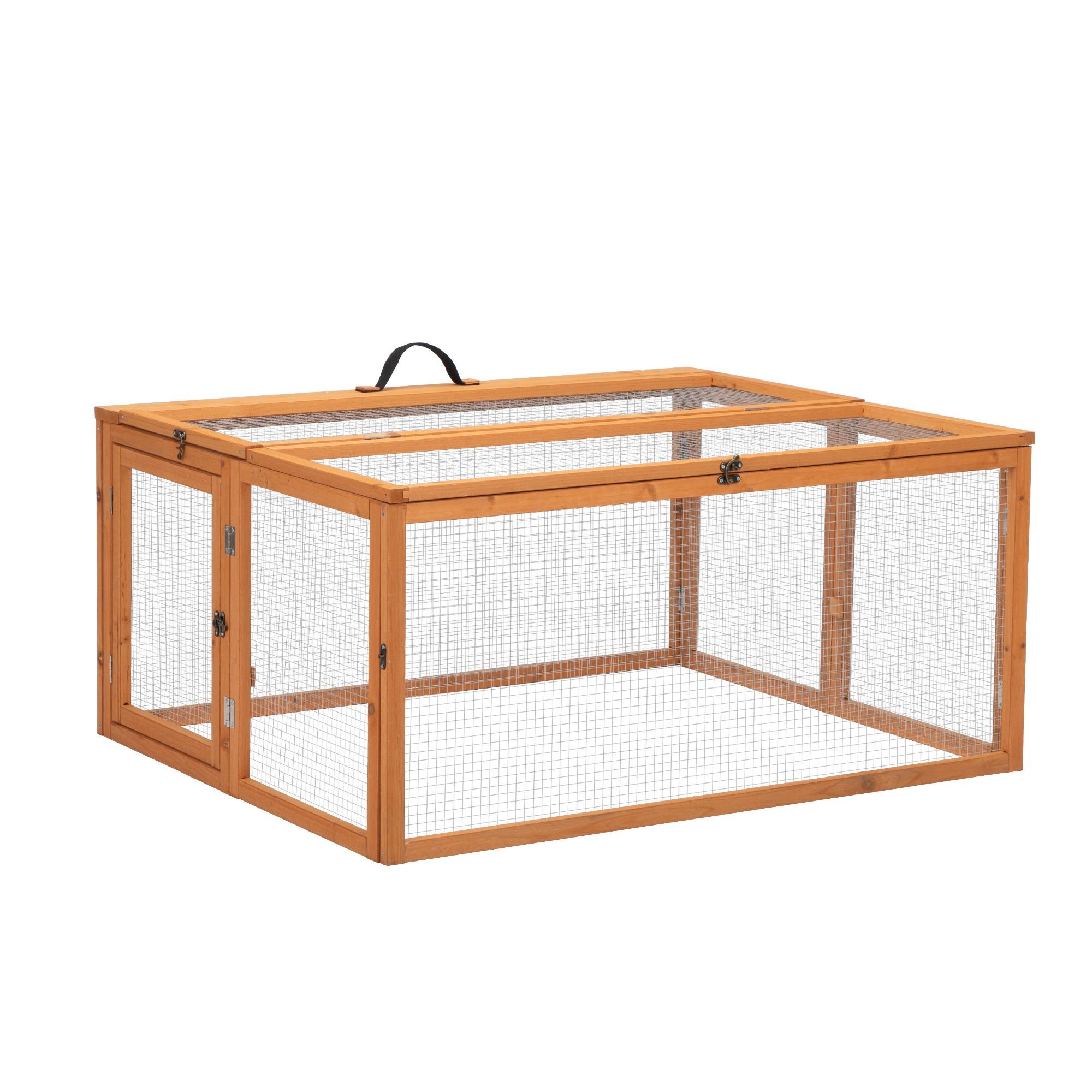 Folding Rabbit Hutch with Roosting Bar; Wood Collapsible Guinea Chick Run; Outdoor Bunny Cage; Portable XH