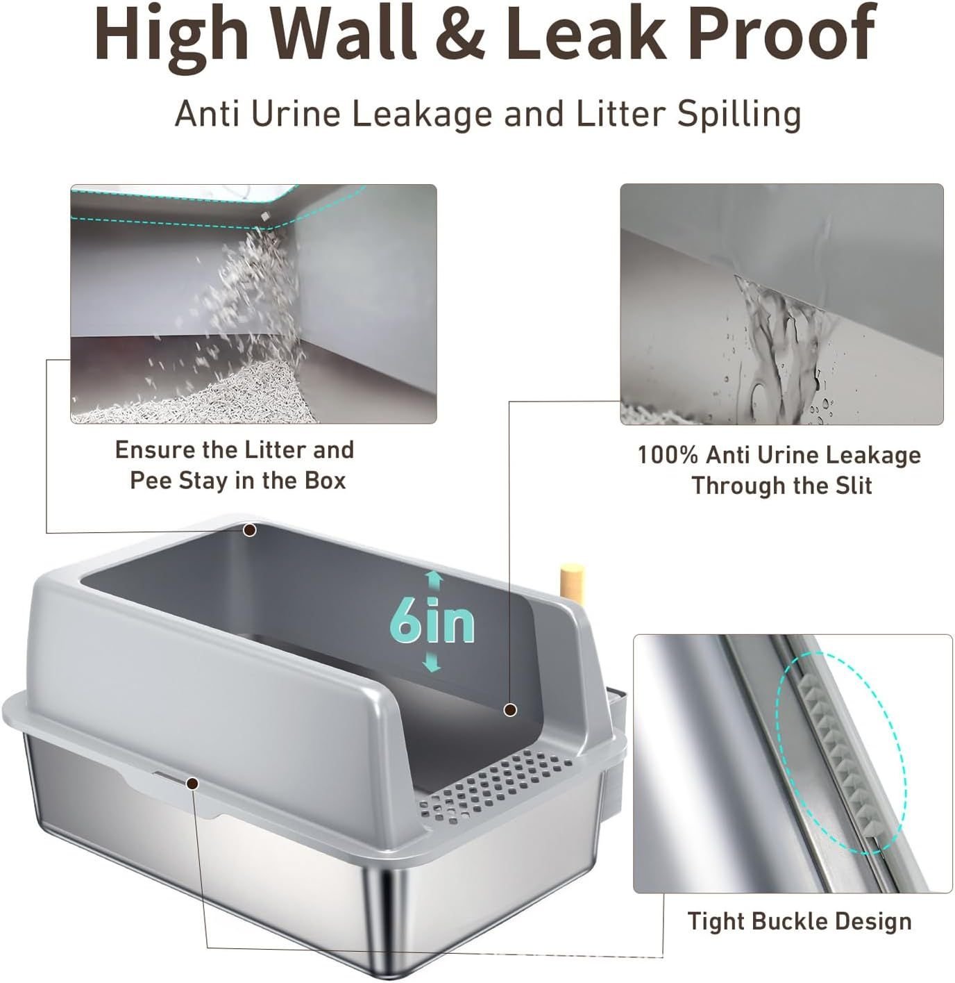 Home > Stainless Steel Cat Litter Box, XXL Extra Large Jumbo Metal Litter Box, with Large Cat Litter Shovel, Anti Leakage Sand Pedal