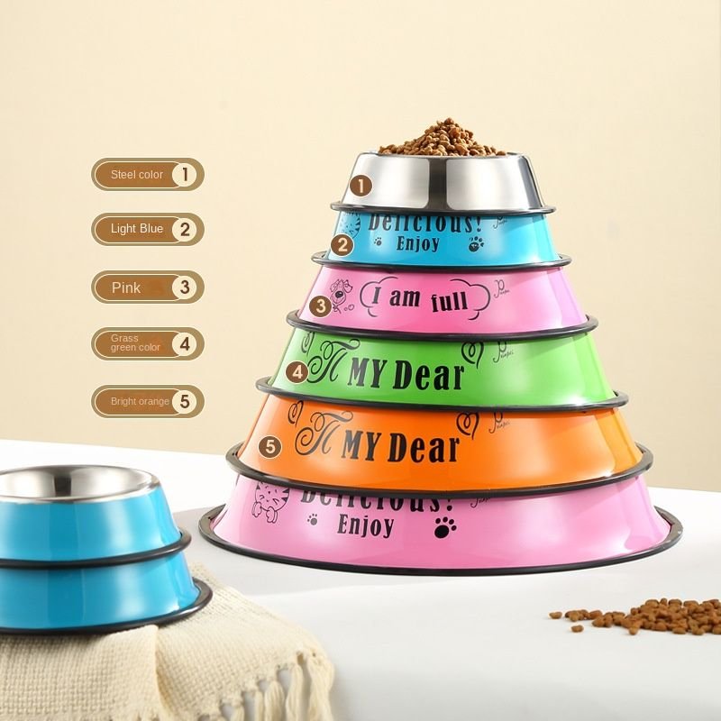 Stainless steel dog bowl; color anti-skid dog bowl; cat bowl