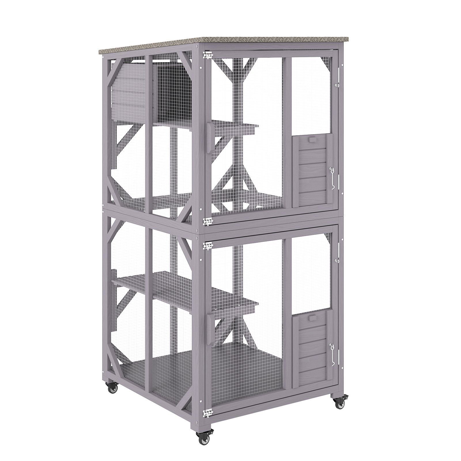 Equipped with 4 lockable wheels, it is convenient for daily movement. The bottom tray can be moved out to easily clean the dirt below. And the cat enclosures can also be moved smoothly from indoors to outdoors.
