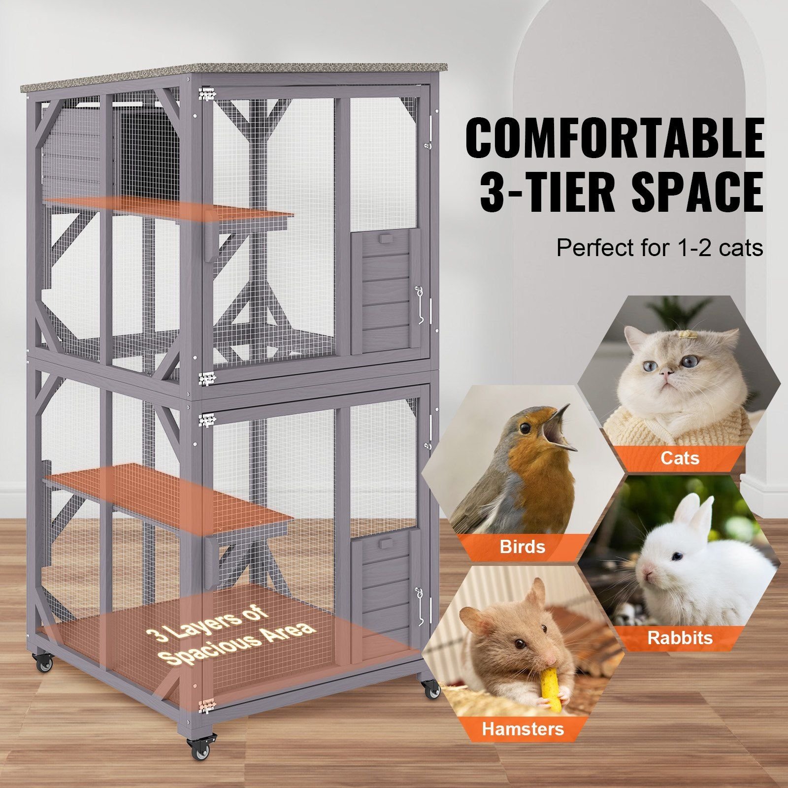 VEVOR Cat House Outdoor, 3-Tier Large Catio, Cat Enclosure with 360° Rotating Casters, 2 Platforms, A Resting Box and Large Front Door VEVOR Cat House Outdoor, 3-Tier Large Catio, Cat Enclosure with 360° Rotating Casters, 2 Platforms, A Resting Box and Large Front Door VEVOR Cat House Outdoor, 3-Tier Large Catio, Cat Enclosure with 360° Rotating Casters, 2 Platforms, A Resting Box and Large Front Door